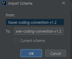 - 다운로드한 naver-intelij-formatter.xml 파일을 선택한 후 OK 버튼을 누른다.
